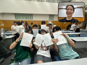 初めて韓国の学生たちと生活をしてみて、お互いの国の文化や言葉について違いを感じながらも楽しく過ごせたと思います。 うまくコミュニケーションを取れない時こそ良い経験になったと思います。 韓国ではなく日本でのキャンプだったので楽しめるか少し不安でしたが、毎日つかれてしまうほど楽しくすごせています。 한국어로 말하기는 어렵지만 한국학생들이 도와줘서 너무 고마웠어요. 나도 한국 학생들에게 일본어를 가르칠 수 있어서 좋았습니다.