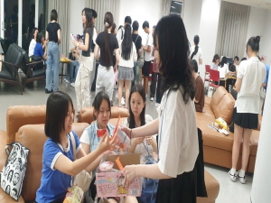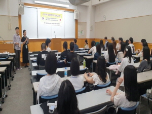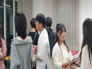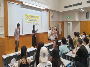 両国の学生代表5名がテーマ2全体討論: 大学教授評価団発表文書整理 |