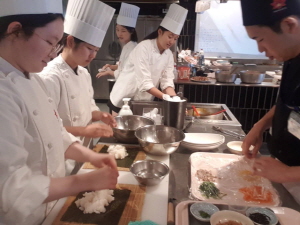韓日料理体験、試食。山手調理師専門学校にて(トッポキ、キムパブ、ジャプチェ、お好み焼き) | 自由時間、友達と一緒にショッピング |
