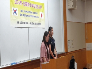 이번이 이렇게 많은 한국 고등학생들이랑 만나서 노는 것도, 얘기해보는 것도 처음이어서 오기 전에나 준비할 때 걱정도 되고 긴장도 했지만, 한국 친구들도 일본 친구들도 다 착하고 친절해서 생각보다 빨리 친해질 수 있었던 것 같습니다. 첫날에는 다들 좀 어색한 느낌도 있으면서도 서로 궁금한 것도 많고, 긴장되는데도 조금씩 친해지려고 하는 모습이 너무 귀엽고 너무 따뜻하고 좋은 분위기라서 제 긴장도 걱정도 다 사라졌습니다. 2일째부터는 제 자신한테 숙제를 내고 더욱 좋은 날이 될 수 있도록 노력했습니다. 숙제는 바로 한국 사람 뿐만 아니라 일본 학생들 모두랑 친해질 것입니다. 그리고 최대한 한국어를 많이 쓰는 것도 제 숙제였는데 한국학생들이 일본어를 너무 잘해서 한국어로 대화하는 게 어려웠습니다. 오늘까지 많은 추억이 너무 많아서, 여기에다가 다 쓰기는 너무 어렵고, 다 쓰면 캠프가 진짜 다 끝나버릴 것 같아서 매우 아쉬우니까, 제일 좋았던 것을 한가지만 말하자면 일정이 다 끝나고 밤에 친구들이랑 대화를 맨날 하는 게 너무 재밌었고 같이 시간을 보내면서 대화내용도 깊어지고, 한국어 실력도 늘어난 것 같습니다. 물론 재밌는 추억이나 행복했던 추억이 더 많은데, 그렇지 않은 일도 있었습니다. 발음이 안 되어서 말이 안 통할 때나, 한국어로 얘기하면서 모르는 단어가 있었을 때 조금 억울했고 더 공부를 해야 하겠다 라는 생각이 들었습니다. 이번에 제일 놀랐던 것은 한국 학생들의 발표 수준이 너무 높았던 것입니다. 물론 일본 학생들도 너무 잘했는데, 다른 나라 학생이 발표를 하는 것을 처음 봤기 때문에 너무 잘해서 충격을 받았습니다.