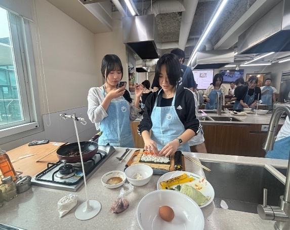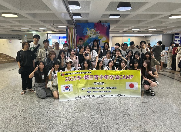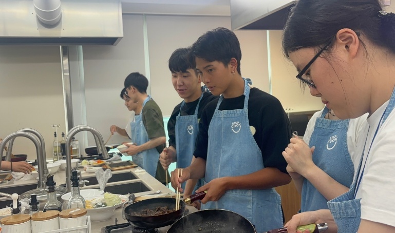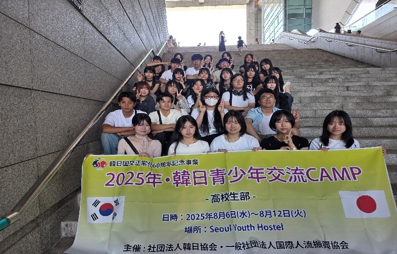 | 8/8(金) | 日本人学生全員共通テーマの発表。事前にテーマ及び参考資料を提供。両国の学生全員が発表を聞き質問。日本優秀学生3人選抜授賞。 | 日韓料理体験。料理学校へ訪問し、両国の料理を直接作って試食。 | (自由時間) グループごとに部屋や休憩スペースでダンス&歌コンテストの練習、または明日訪問する場所で何をするかについて話し合います。 |