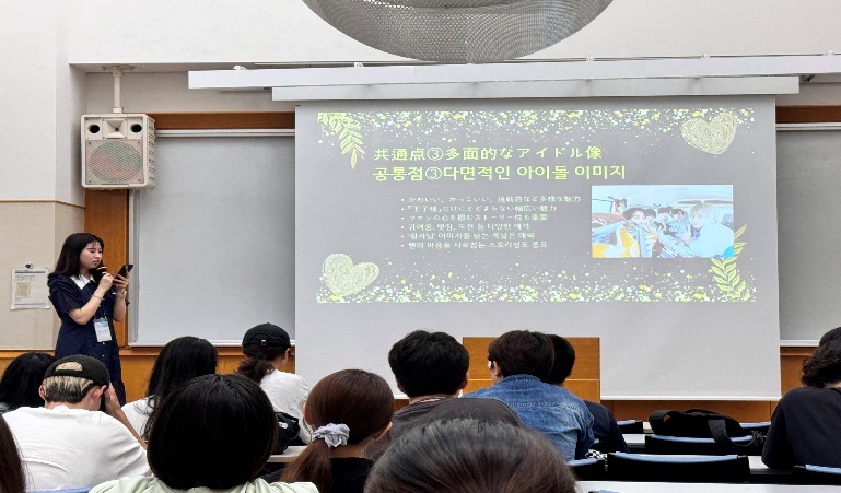 평소에 일본문화에 관심이 많아 미디어로는 자주 접했지만 이렇게 현지인과 직접 만나 교류하는 것은 처음이라 색다르고 즐거운 시간이었습니다. 궁금했던 것들에 대한 현실적인 대답을 들을 수 있어서 좋았고 한일 문화가 많은 부분에서 닮아 있다는 걸 느낄 수 있었습니다. 특히 지금껏 미디어로 접했던 것보다 한류 열풍이 훨씬 더 세다는 것을 실감해서 신기했고 우리 문화에 대한 자부심도 느낄 수 있었습니다. 오히려 일본 학생이 한국인보다 한국노래나 아이돌을 더 잘 아는 경우도 있었고 비유나 숙어 등 어려운 표현도 잘 알고 있는 것을 보며 대단하다 생각했고 앞으로 일본어 공부를 더 열심히 해야 하겠다고 다짐하기도 했습니다. 교수님의 기조강연을 들으며 다문화 시대에 나의 정체성을 어떻게 정의해야 할 지, 어떤 자세로 타인을 봐야 할 지에 대해 생각해 볼 수 있었고 국가와 시민이란 어떻게 구분되는지, 소속감이란 무엇인지에 대해서도 다시금 생각하고 사고를 확장시킬 수 있었습니다.