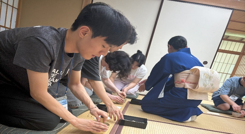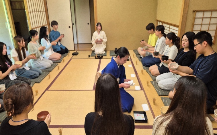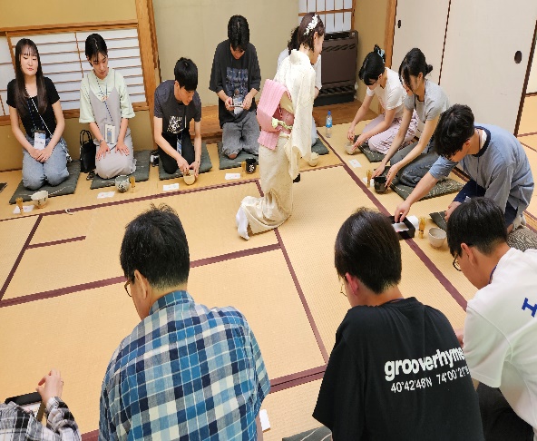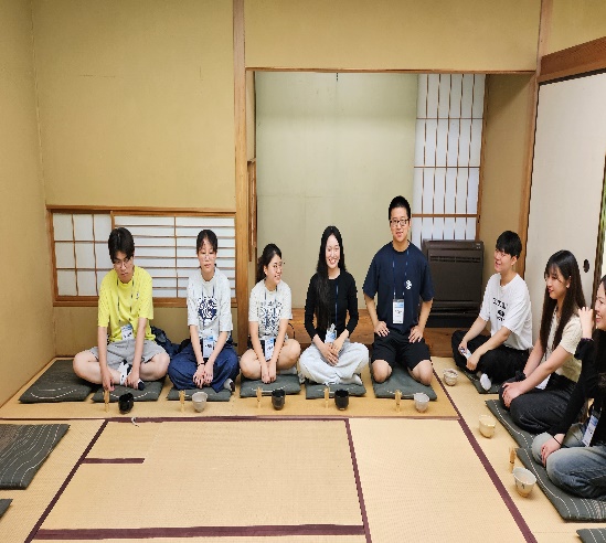 | 7/25(金) | 日本人学生全員共通テーマの発表。事前にテーマ及び参考資料を提供。両国の学生全員が発表を聞き質問。日本優秀学生3人選抜授賞。 | 茶道体験と伝統衣装体験を20名ずつ2グループに分けて実施 | 今後の活動のためにグループメンバーとの協議および事前練習、特にダンスと歌のコンテストについて協議 |