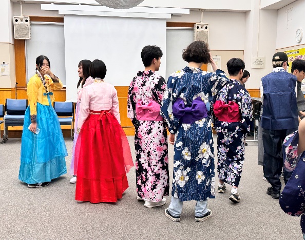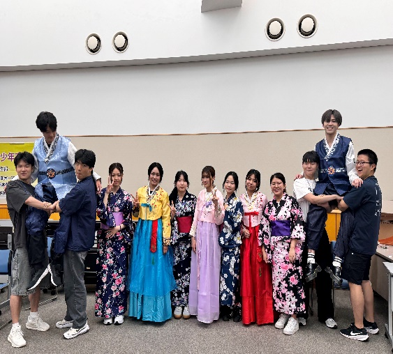 個人及び班別のダンス、ミュージックコンテスト(商品も提供)。 伝統衣装体験の時間に伝統ゲーム(ジェギチャギ、コンギノリ、けん玉)を楽しむ 参加感想文作成。寄せ書き作成。 |