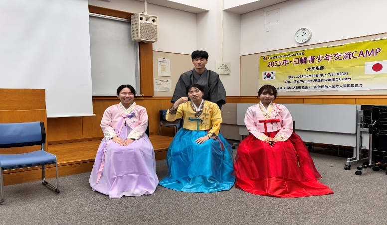 7月25日:テーマ発表会、 伝統文化体験(茶道、韓服と浴衣)