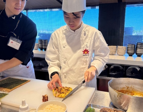 | 7/26(土) | 韓国人学生全員共通テーマの発表。事前にテーマ及び参考資料を提供。両国の学生全員が発表を聞き質問。韓国優秀学生3人選抜授賞。 | 日韓料理体験。料理学校へ訪問し、両国の料理を直接作って試食。 | 新宿でグループごとの自由活動後、21時までに帰所 |